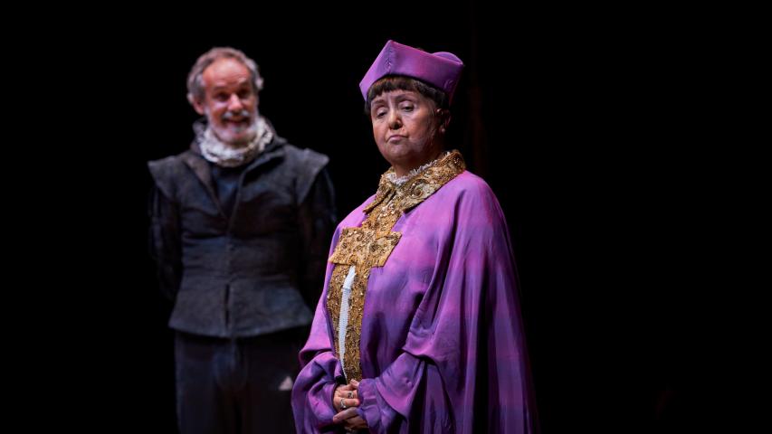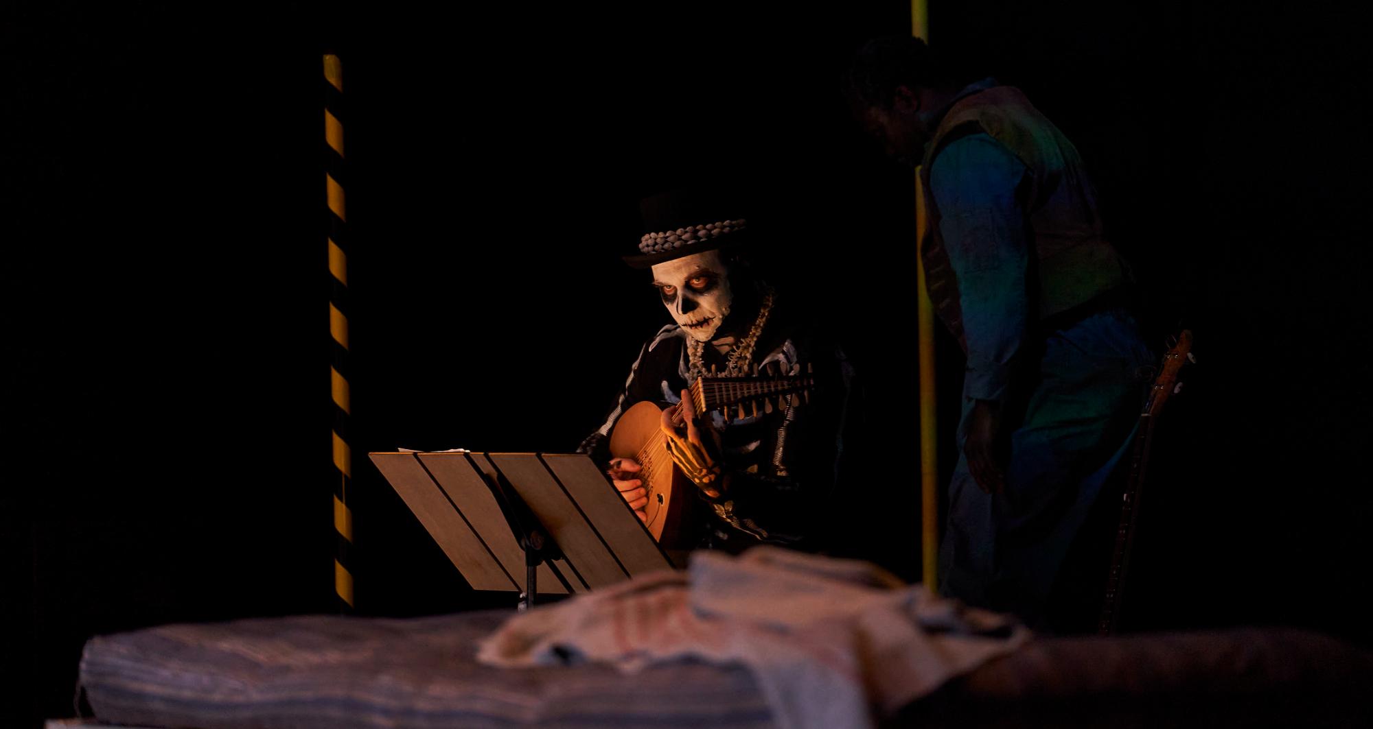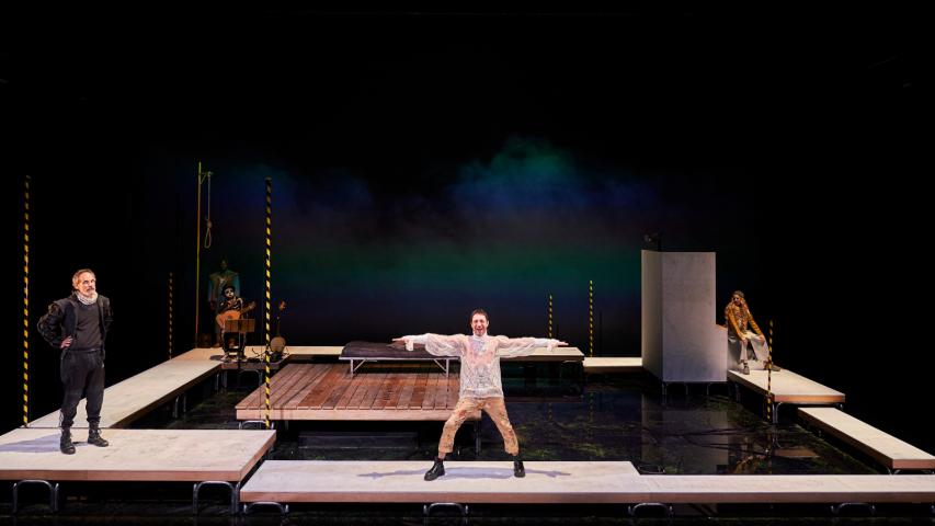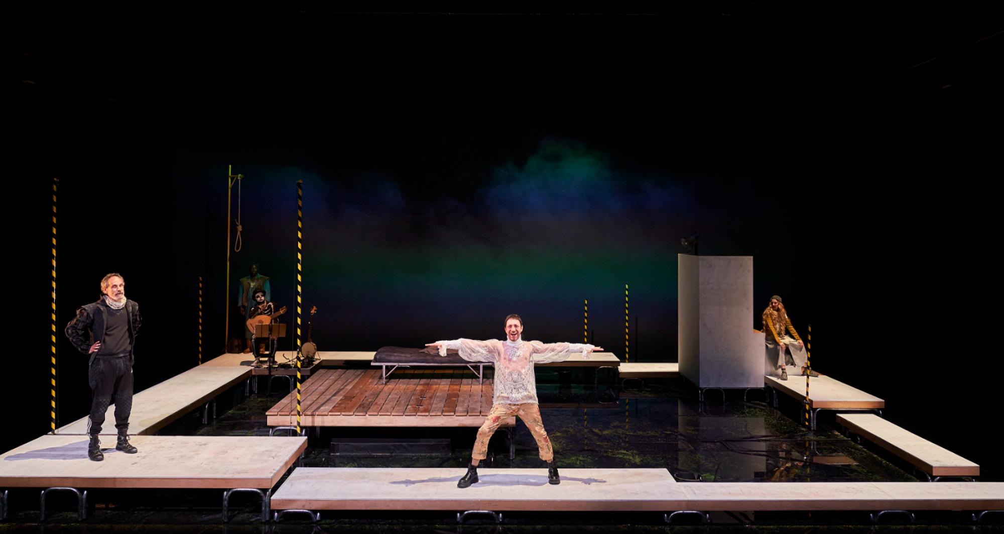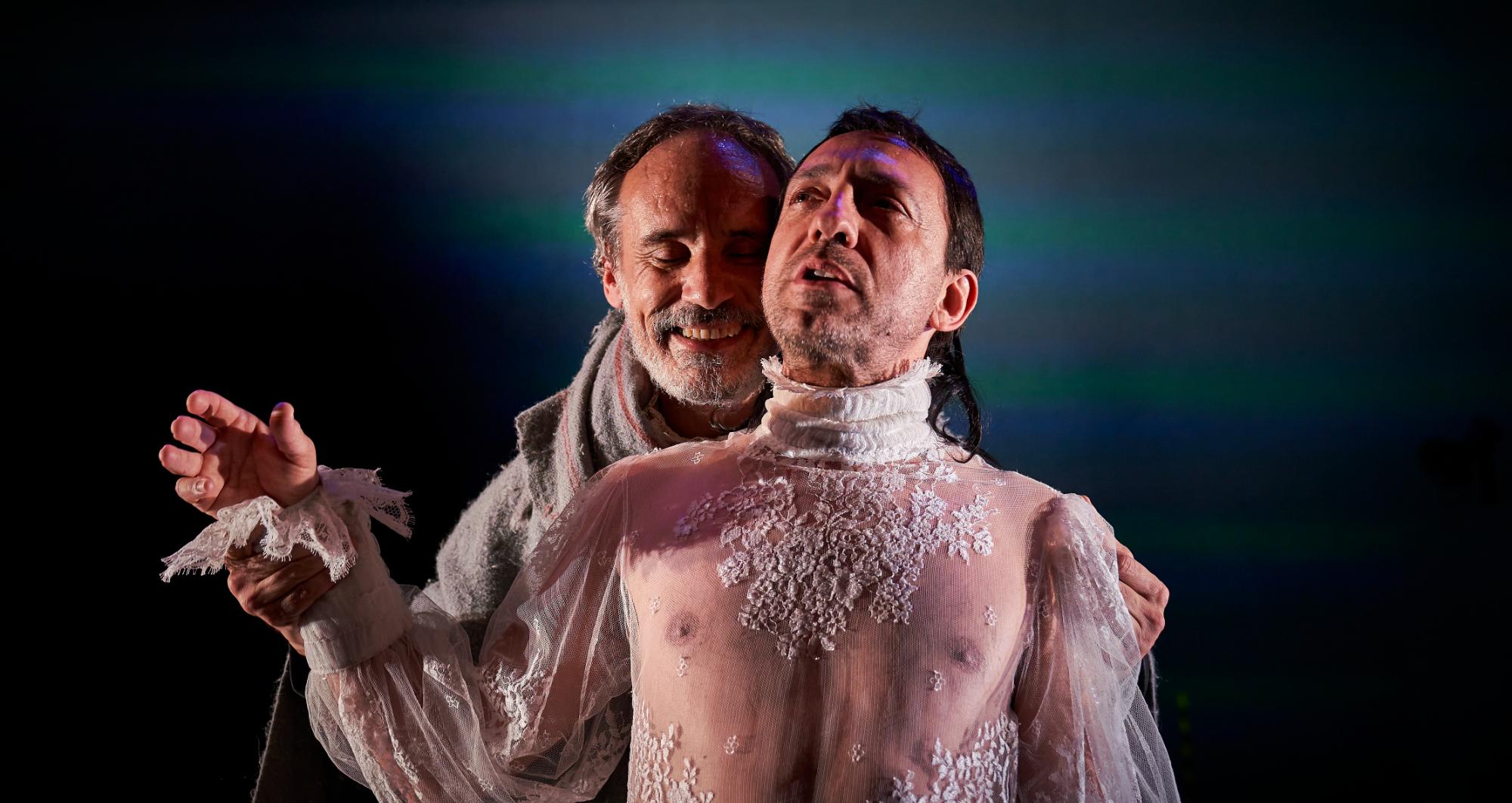 Per tal de recrear els carrers de la Bruges del segle XVI, l’escenografia d’aquest espectacle estava concebuda perquè l’aigua hi tingués un paper predominant. Per responsabilitat ecològica, pel compromís del TNC amb la sostenibilitat del país i atesa la sequera que estem vivint, hem decidit no omplir el terra de l’escenografia amb aigua i substituir-ne l’efecte poètic amb vídeo i fum. Tanmateix, però, i per poder contribuir a la narrativa de l’obra, ha estat inevitable utilitzar una quantitat mínima d’aigua, la qual es recicla i reutilitza cada dia per a altres usos.