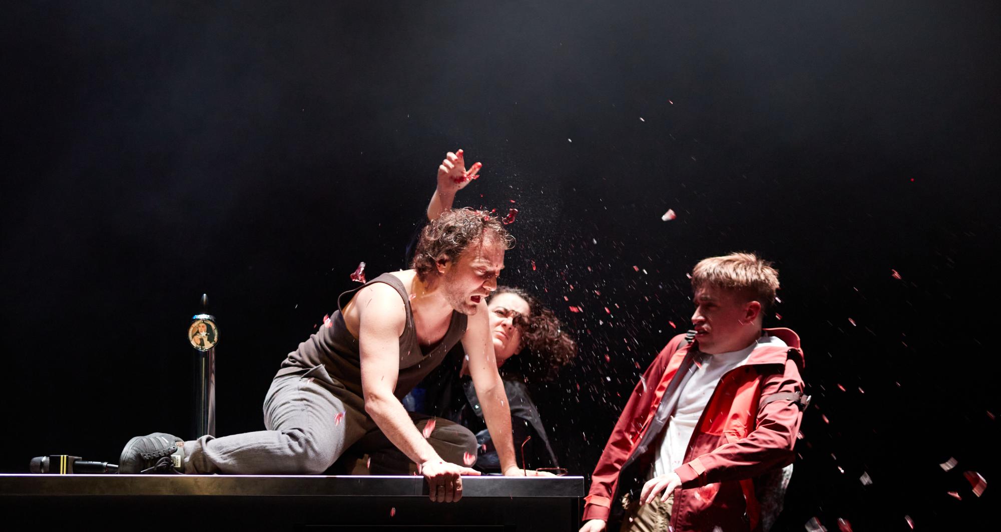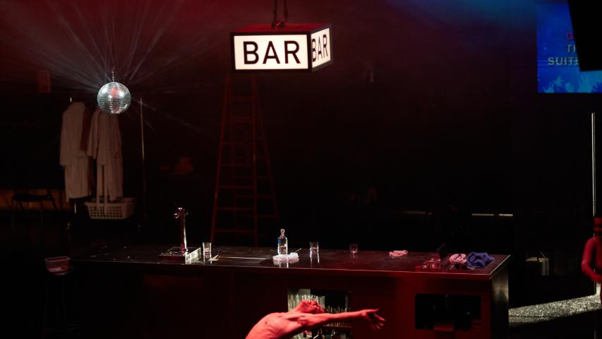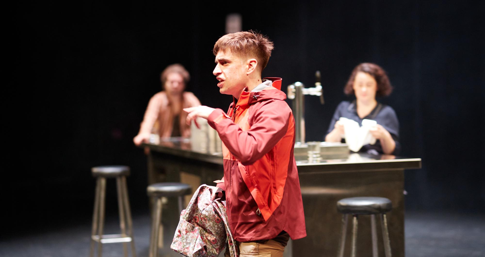 A la nostra obra, tres personatges agònics i mig alcoholitzats, que pateixen algun dolor a l’ànima, es troben en un bar. Un espai que, com el convent, reuneix gent que d’alguna manera necessita fugir de la quotidianitat. Ànimes assedegades, fidels al lloc que habiten, que poden tenir visions, si no místiques, com a mínim distorsionades.