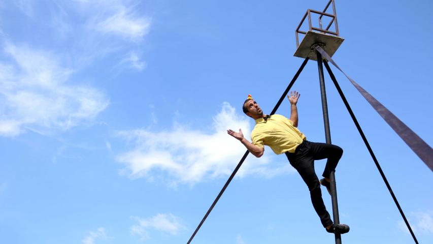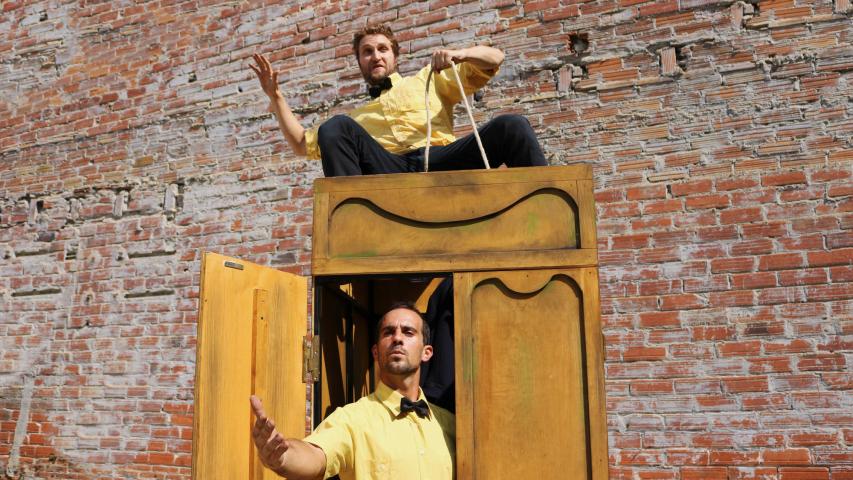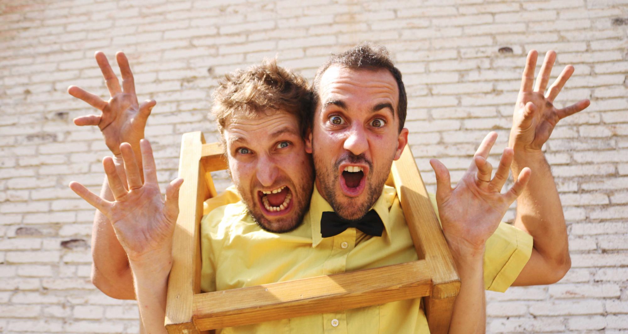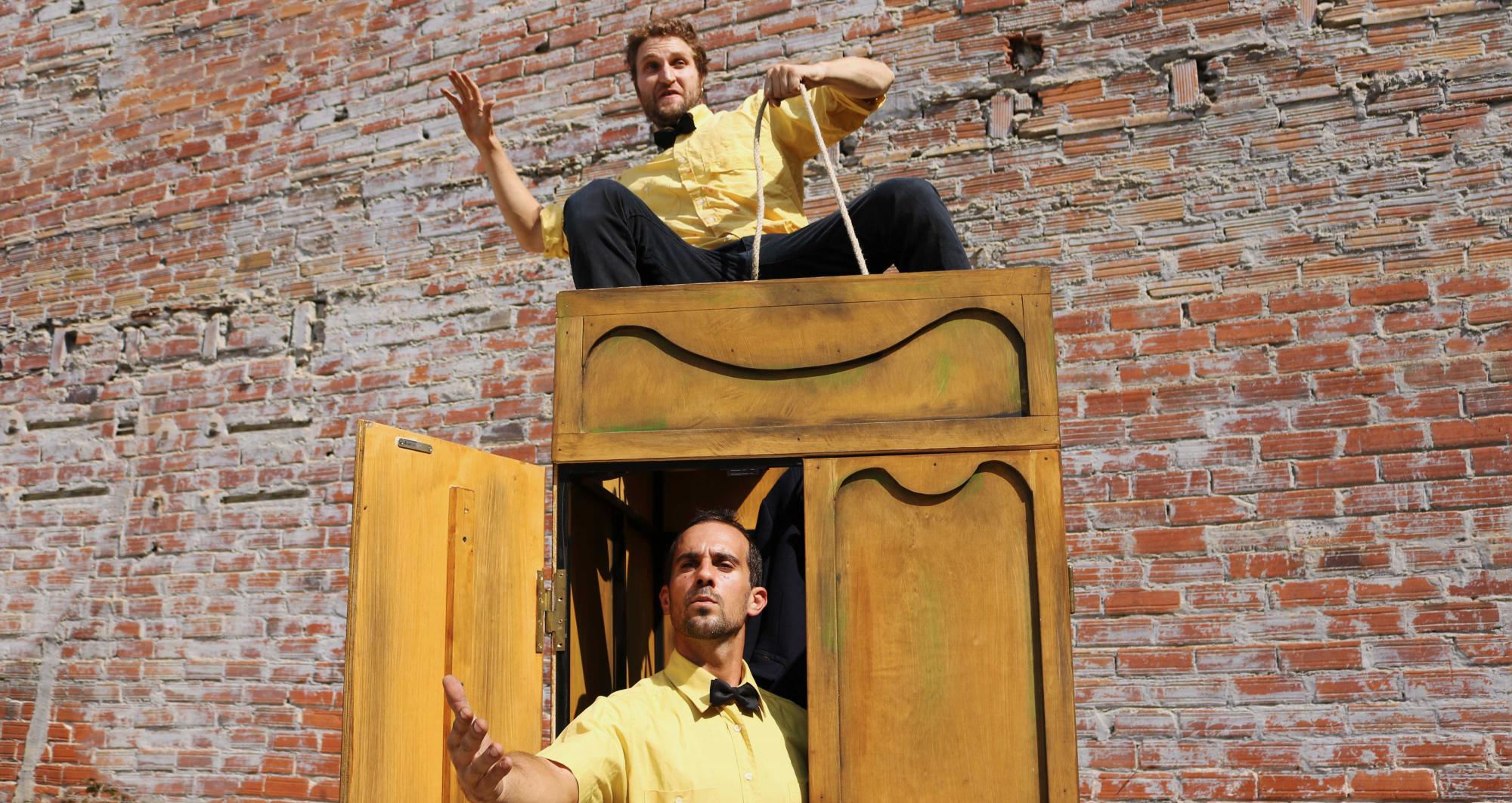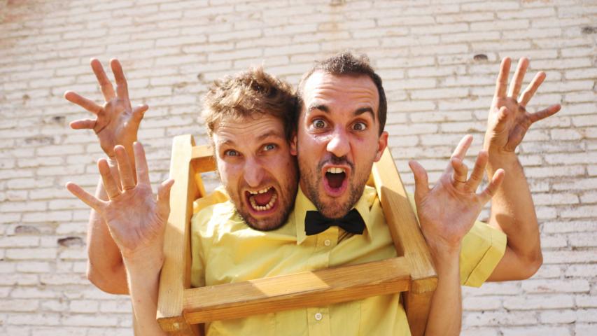 Dos personatges en clau de circ i amb humor intentaran superar els entrebancs que ells mateixos es busquen amb accions quotidianes com pot ser seure en una cadira, penjar una jaqueta o pintar un quadre.