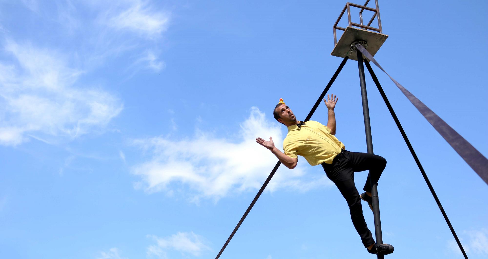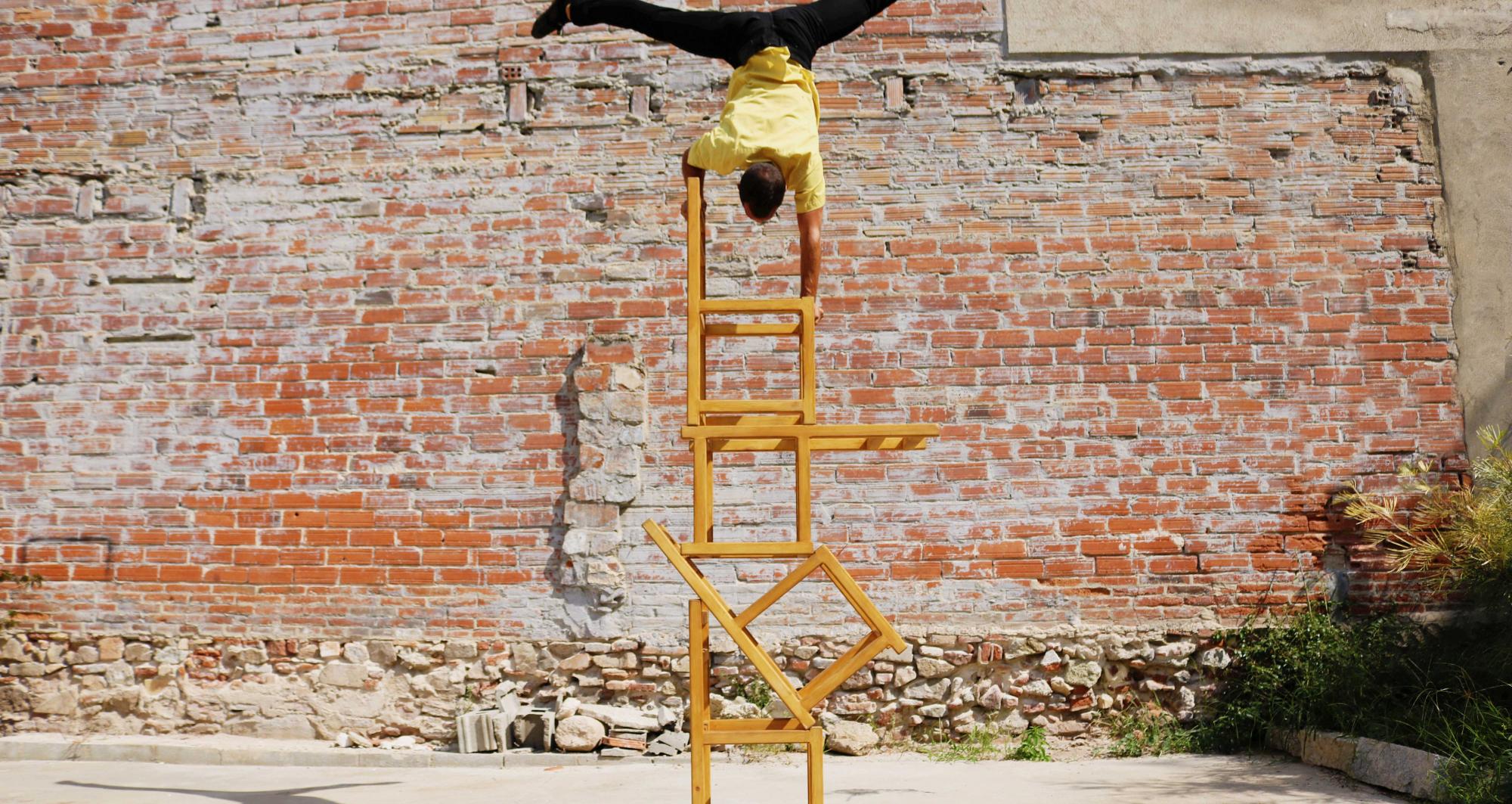 Un espectacle de circ, potent i amb moltes disciplines; la roda cyr, malabars, pal xinès, manipulació d’objectes, verticals amb cadires i acrobàcia. Un show fresc on la comicitat és sempre present, a més d’un caire familiar completament agradable on gaudeixen tant els petits com els grans.
