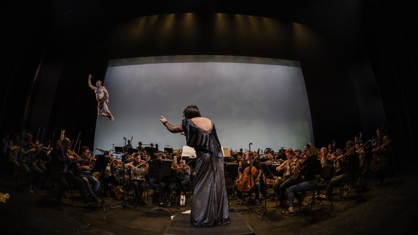 Jordi Oriol, qui va treballar amb Carles Santos en la seva última creació, presenta un espectacle musical a partir de l’obra simfònica del genial compositor i la batuta transgressora de Wanda Pitrowska al capdavant de l’Orquestra Simfònica de Barcelona i Nacional de Catalunya.